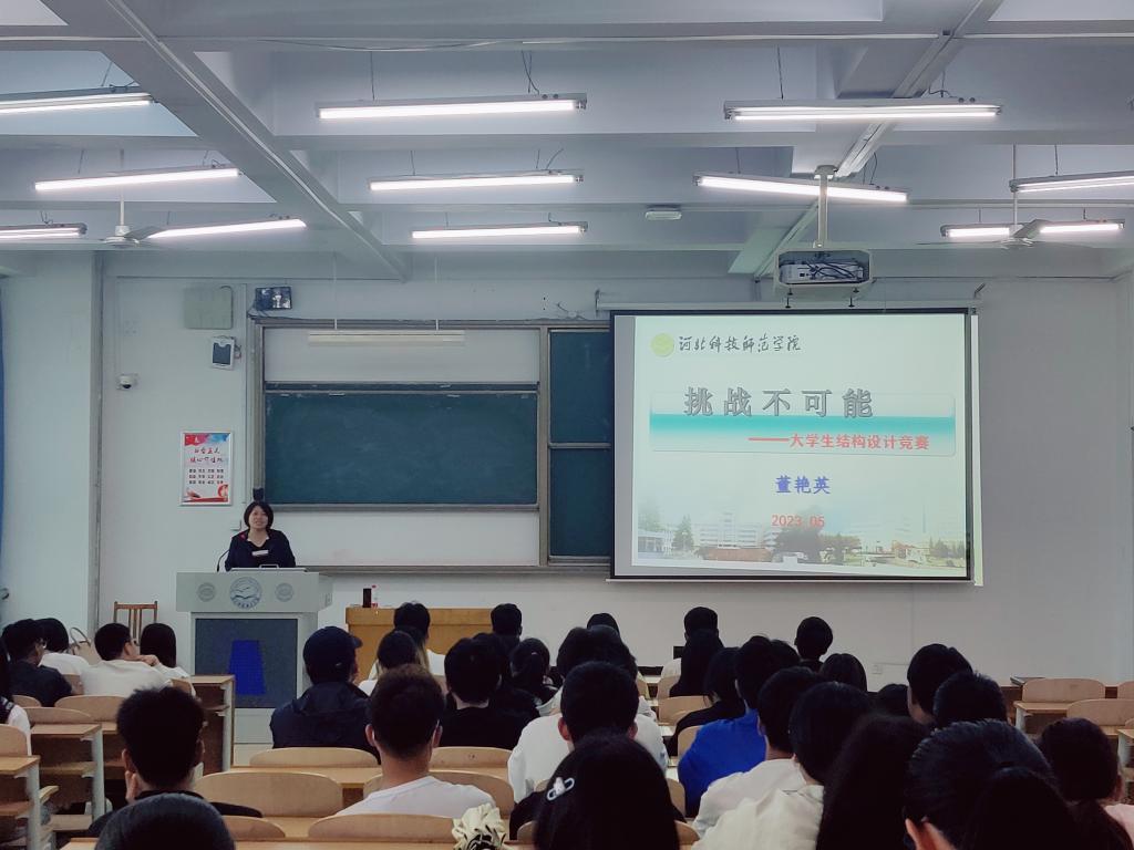 为更好的准备内射女技师啪啪创新设计竞赛——结构设计竞赛,使参赛同学更全面、准确、清晰地掌握赛题的一些要求及注意事项,城市建设学院于2023年5月18日,在逸夫楼B202举办结构设计竞赛经验分享讲座。邀请内射女技师啪啪董艳英教授担任主讲人,相关指导教师和参赛选手参加了本次讲座。