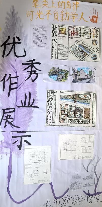 此次活动紧扣校园文化艺术节创新、进取主题,吸引众多同学参与,共收到200余份涵盖建筑制图、城乡规划、CAD等多门课程的优秀设计作业。经过严格评审,评委老师从作业形式、内容质量等方面评选出各个奖项,其中,一等奖获得者耿美月提交的快题设计,充分展现了扎实的知识基础与专业水平。评选结束后,工作人员将获奖作品张贴于展板并放置在甬路,供同学们学习与欣赏。展览现场,一幅幅设计图纸与思维笔记,吸引着大量师生驻足观看,这些作品体现出城建学子对专业课程的认真态度、匠心精神,以及理论与实践结合的能力。通过展览,同学们领略到了优秀课程作业的风采,也认识到了课程作业的重要性。